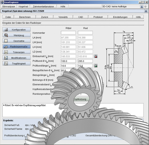 GearEngineer, die Spezialsoftware für die Berechnung der exakten 3D-Geometrie von Verzahnungen, wie zum Beispiel für Stirn- und Kegelräder.mehr...