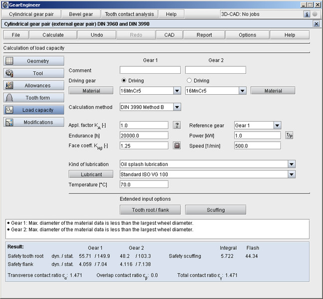The powerful software module allows to calculate and optimize external and internal spur and helical gears. The software module comes with an extensive calculation of the gear geometry and contains the determination and generation of the accurate 3D gear tooth form including profile and flank modifications. This module also includes the calculation of the load capacity according to DIN 3990 and ISO 6336.