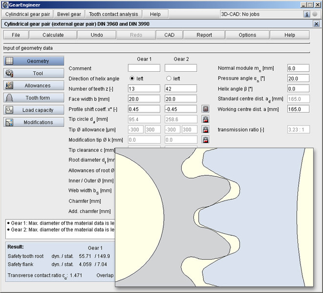 - More flexibility to obtain an optimal gear design, e.g., a freely selectable module, the 20° pressure angle can be customized as needed, special gearings (e.g., full-depth gears and stub tooth gears) or double helical and herringbone gears (with and without space in the center), bevel gears